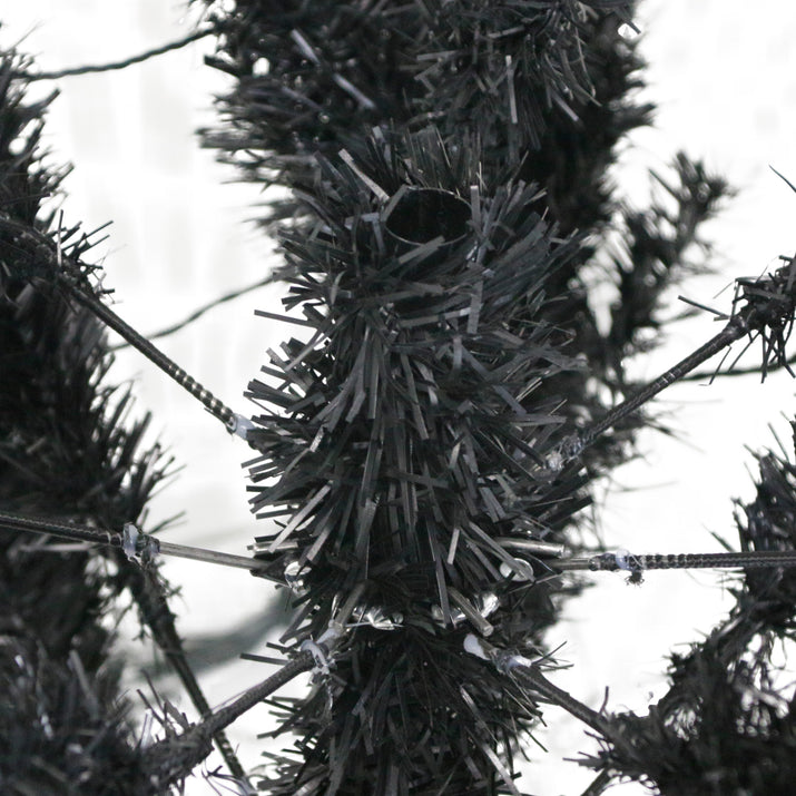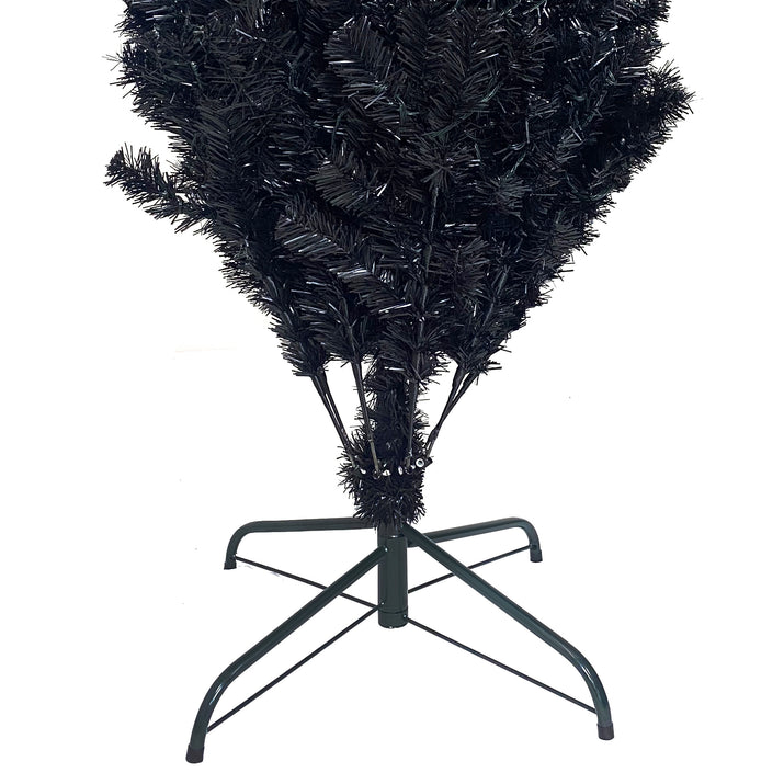 6FT artificial fir curved top Halloween tree, with 1080 lush branch tips and 300 LED lights in a Christmas and Halloween style