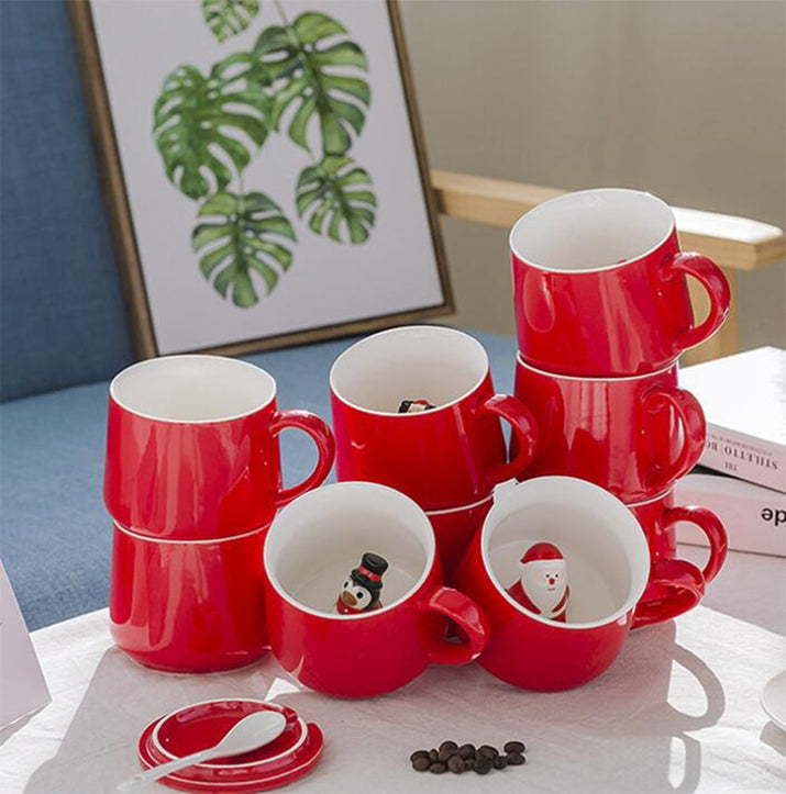 Christmas Mug Coffee Milk Breakfast Mug Snowman Santa Claus Cartoon Ceramics Cup 3D Animal Christmas Gift Cup for Friend Family